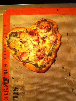 This weekend was busy (and it's still not over!). Wednesday, we celebrated Christmas with the Miller/Schier family who gave Gatsby a gift in the form of a donut, sprinkle shaped treat. I couldn't get him to sit long enough to even begin to take a picture of him. He also scored two squeaky toys that I did record a video of him playing keep away which I sent to the kids. They obviously loved it, and being responsible for hiding two toys was exhausting for him so it ended up being a win-win. I also set up my brand, spankin' new mixer which I already love, clearly. I randomly walk by it and pet it to the point that Gats is even getting jealous. We headed to Austin for the afternoon Friday where we drank a beerita at hopdoddy and ate a piece of pizza at Home Slice with HP's brothers and a couple of friends. Jealously is allowed. New Year's Eve, I made homemade pesto to top our homemade pizza (along with shallots, asparagus, orange bell pepper, turkey sausage, and mozzarella cheese). Huynh rolled out the dough with a wine bottle; mine was heart shaped :). We toasted 2012 with a Moscow mule courtesy of Oprah. It was as delicious as she raved - and yes, served in a cappuccino cup so no judging. Sunday, we made homemade brioche rolls to eat with pork barbacoa. Yay for resolutions.